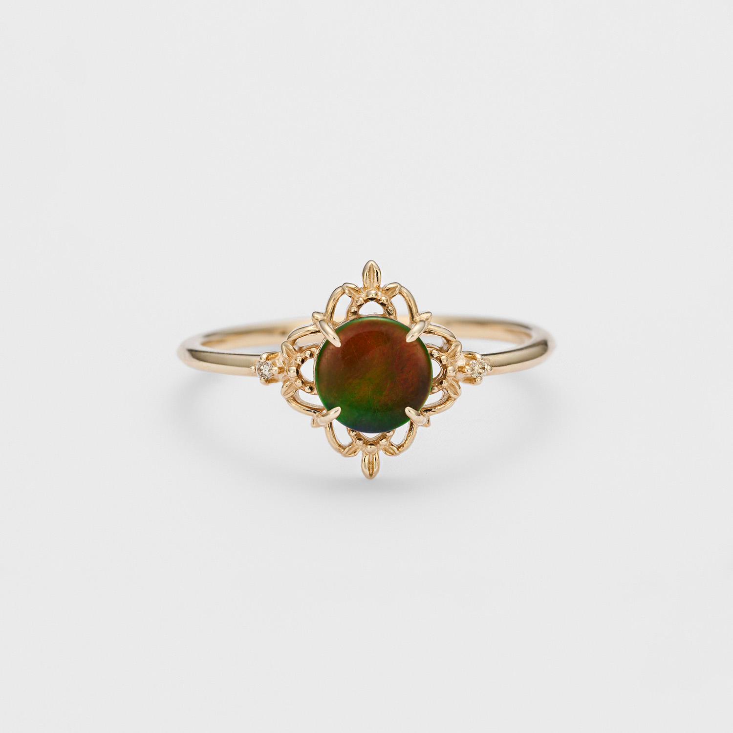 圆润的水滴轮廓,内里花纹是平衡感十足的设计,纯粹的金色光芒来自镂空花纹和圆点压花工艺。