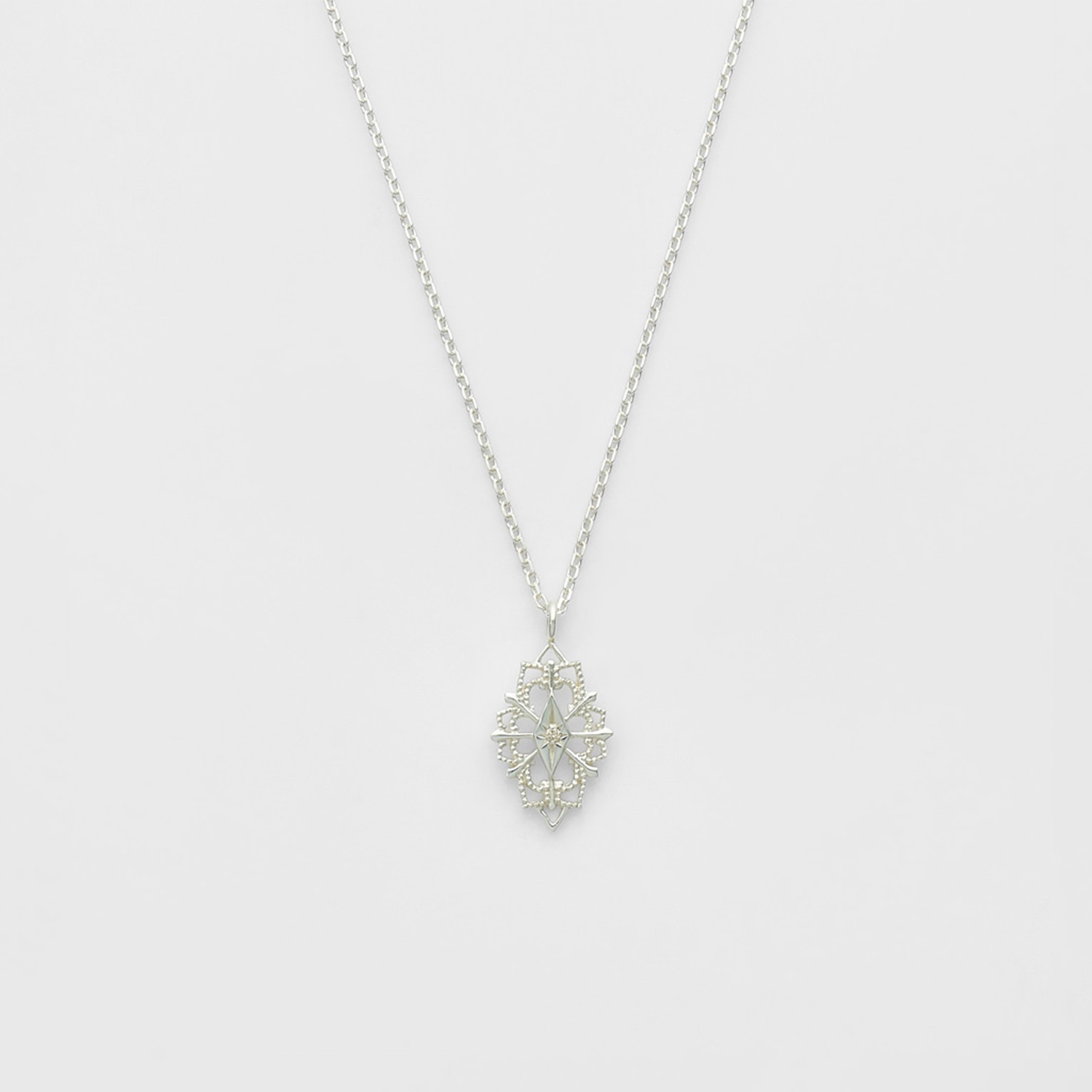 一条银质钻石项链,设计灵感源自夜空中悬挂的弯月。